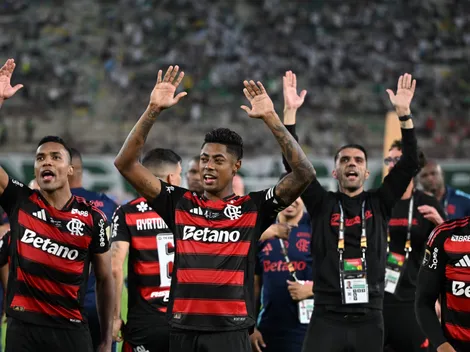 Conversas do atacante com Arrascaeta e com o presidente da Conmebol marcaram a festa rubro-negra em Lima, no Peru