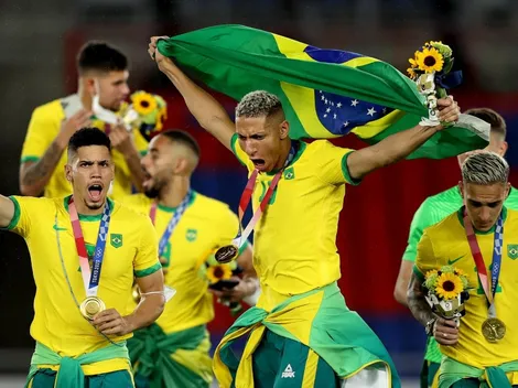 Os jogadores da seleção brasileira receberam a medalha de ouro sem casaco do agasalho do Time Brasil