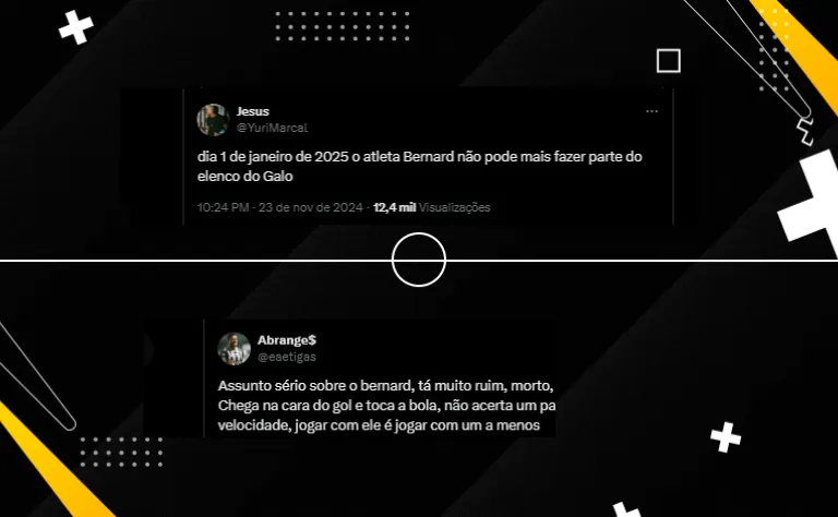 “Dia 1º de janeiro de 2025 o atleta Bernard não pode mais fazer parte do elenco do Galo“. Quem quiser ter paciência com o Bernard que tenha! Mas para mim tem que estar na lista para dispensa no ano que vem. Agradece pelo passado, mas pede para o empresário achar outro clube para ele”, comentararam torcedores.
