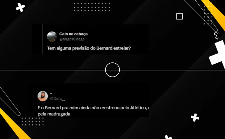“E o Bernard pra mim ainda não reestreou pelo Atlético, com voltou mal pela madrugada”, questionou um torcedor do Galo sobre o jogador ainda não ter jogado em alto nível desde sua volta ao time que o revelou.