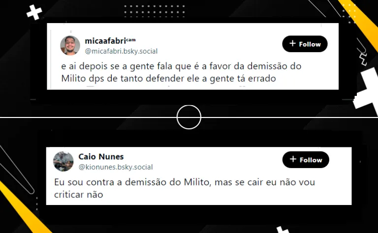 Em meio a isso, muitos atleticanos seguem atentos à situação de seu treinador, Gabriel Milito. O argentino não é unanimidade e sua demissão vem sendo pedida por alguns, há algum tempo.