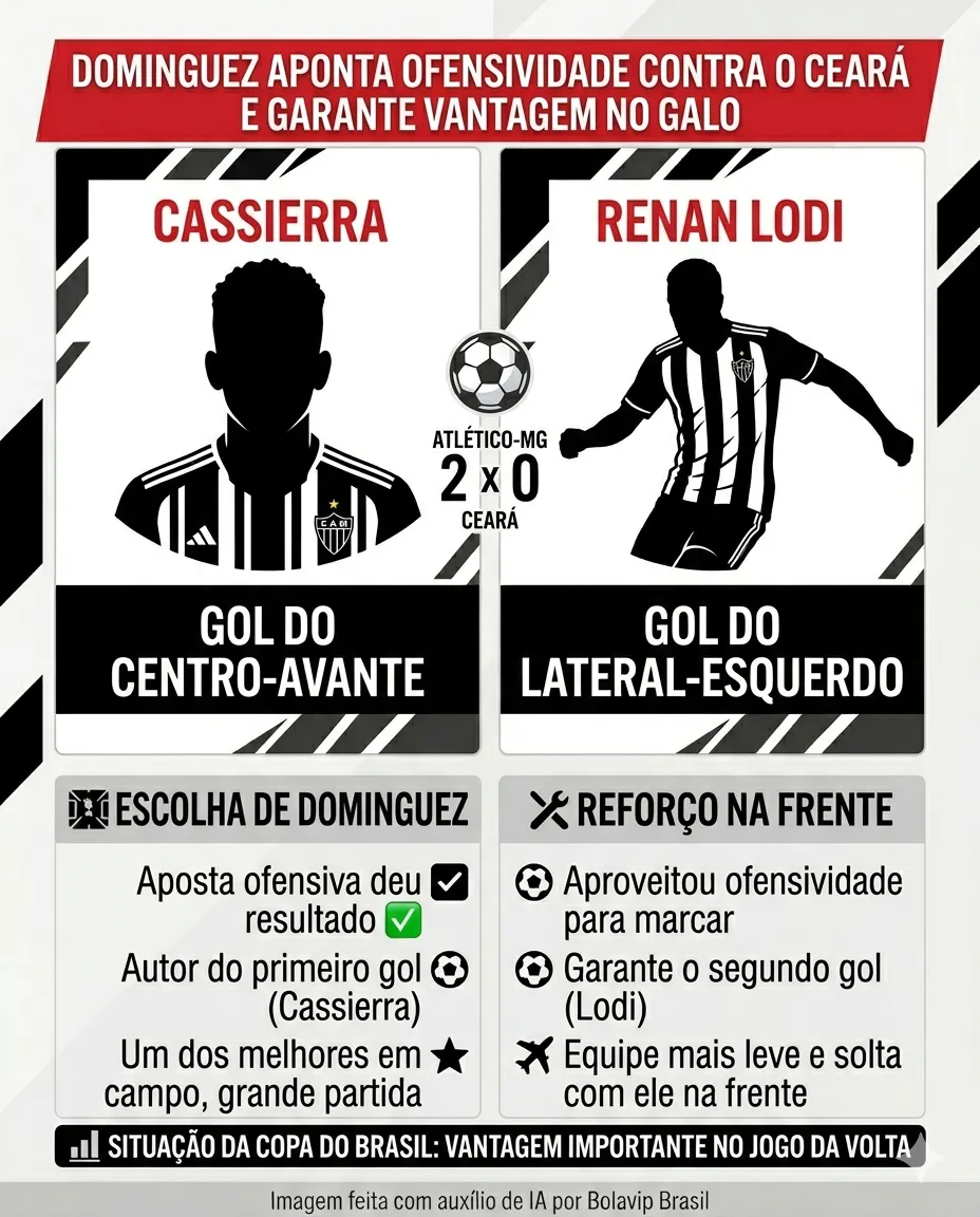 O Atlético Mineiro venceu uma partida importante na noite desta quinta-feira (23). A equipe de Eduardo Dominguez jogou melhor e dominou o Ceará dentro de casa em partida válida pela Copa do Brasil.