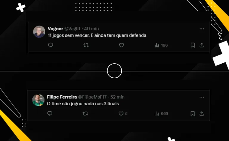 “O time está com um a mais, mas o nosso treinador não pensa em tirar os três zagueiros, isso é inexplicável“. Outro atleticano opinou algo parecido na rede social: “técnico de uma tática só! Não tem repertório para mudar e colocar o time mais para frente“.