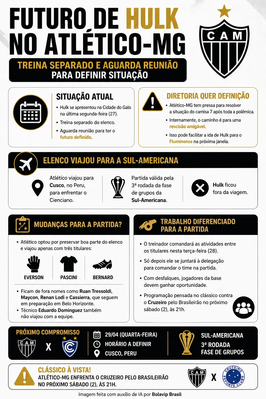 Saída de Hulk pode impactar negativamente no elenco do Galo?