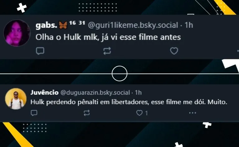 Na rede social Bluesky, um atleticano criticou o pênalti batido por Hulk: ”Na Libertadores passada perdeu um pênalti importante; hoje perdeu um mais importante ainda porque é o segundo jogo. Bater pênalti com perna de minhoca só serve para dar moral para goleiro”.