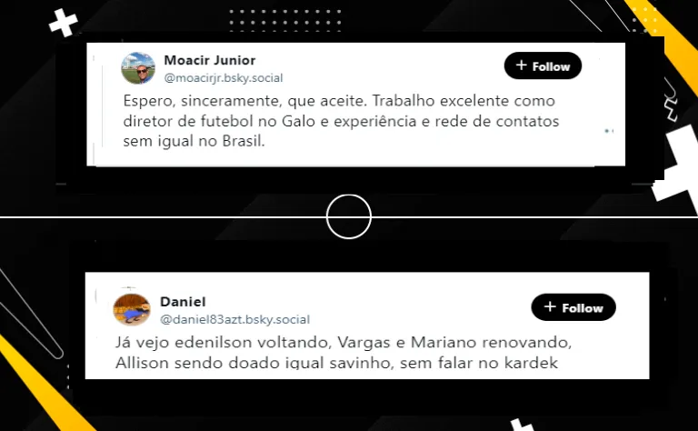 Porém, os atleticanos podem não descartar essa possibilidade ainda. Afinal, dificilmente, Rodrigo Caetano iria confirmar que tem negociações ainda estando no cargo dentro da Confederação Brasileira de Futebol.