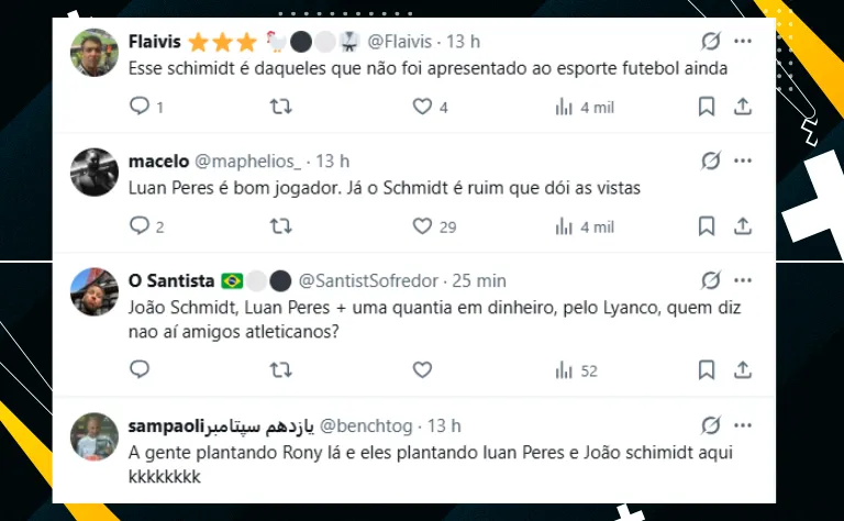 Por fim, por mais que nenhuma proposta tenha sido feita, o simples interesse do Galo na dupla caiu como uma “bomba” entre os atleticanos. Confira a repercussão negativa entre os mineiros: