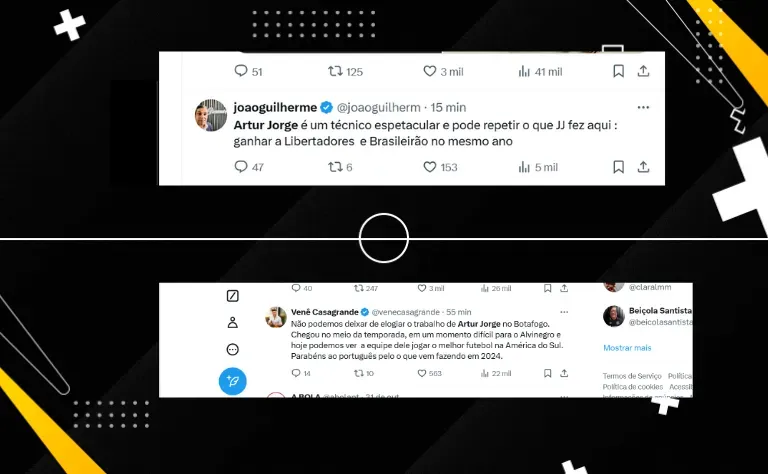 Nas redes sociais, torcedores do Botafogo e também de outros clubes parabenizam técnico luso, que, em pouco menos de seis meses, colocou o Glorioso como favorito ao Brasileirão Betano e na Libertadores.