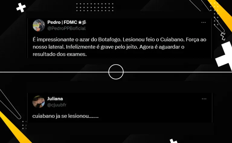 “Vamos torcer para que não seja nada grave e ele volte já no próximo jogo“. Outro botafoguense lembrou da Data FIFA: “o departamento médico precisa aproveitar essa pausa para recuperar o Cuiabano“.