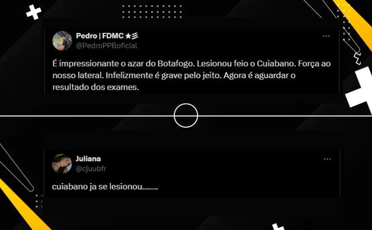 A contusão deixou boa parte da torcida preocupada: “É impressionante o azar do Botafogo. Lesionou feio o Cuiabano. Força ao nosso lateral“, disse um torcedor logo após a substituição do lateral titular do Botafogo.