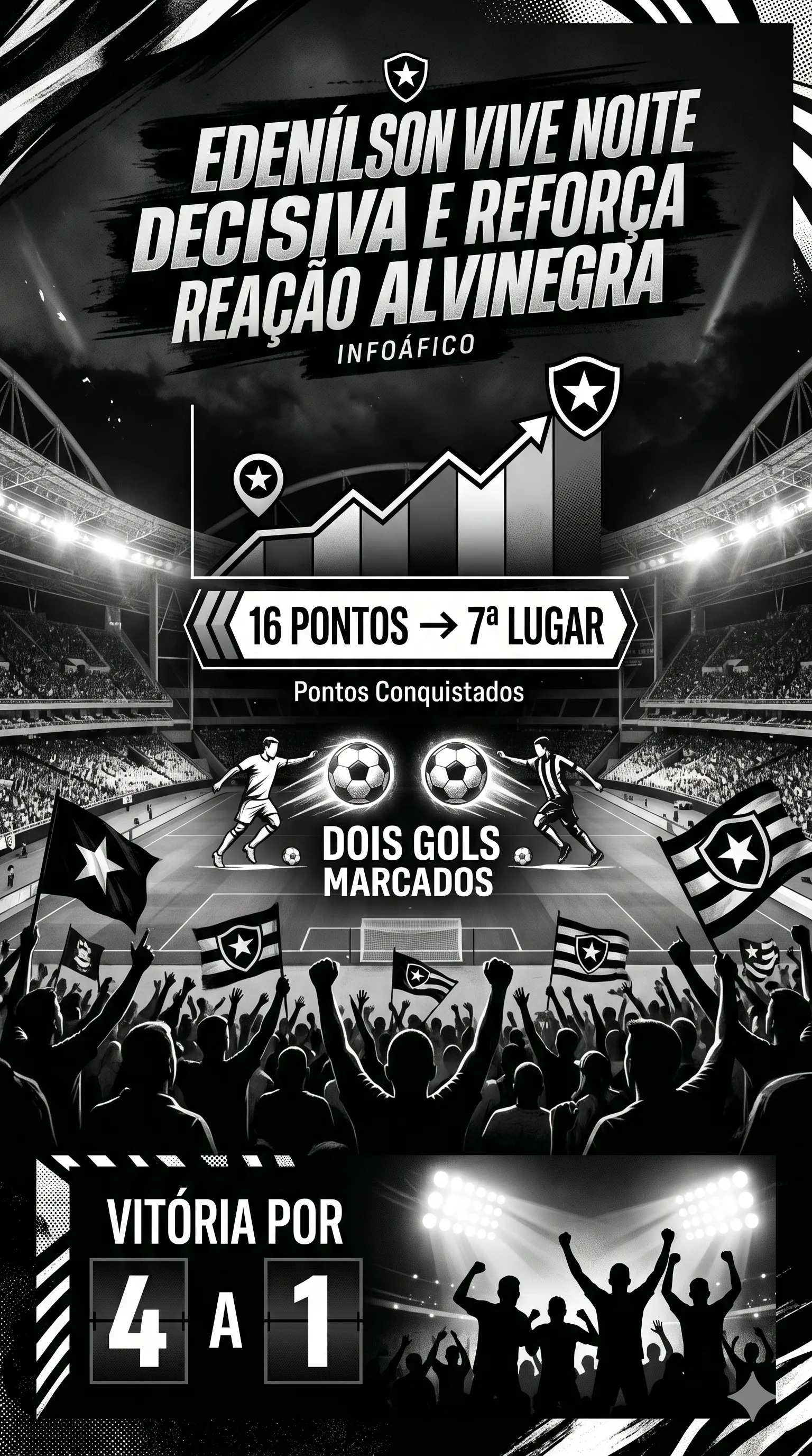 A vitória colocou o Botafogo na sétima posição do Campeonato Brasileiro, agora com 16 pontos somados. O resultado aproxima o clube da parte de cima da tabela e aumenta a confiança para a sequência da temporada.
