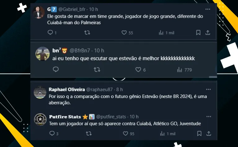 Não à toa, como Estêvão passou em branco em todos os clássicos que fez na temporada, diversos botafoguenses aproveitaram o feito de Luiz Henrique para provocar o camisa 41 do Palestra.