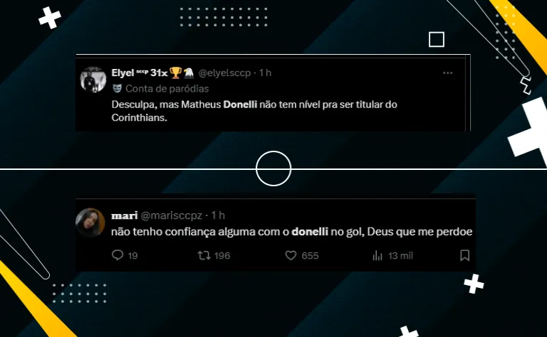 “Desculpa, mas Matheus Donelli não tem nível para ser o titular no Corinthians“. Por outro lado, outros torcedores do Corinthians avaliaram com mais calma o desempenho: “Conseguiu fazer uma baita defesa antes, mas não pode levar esse gol“.
