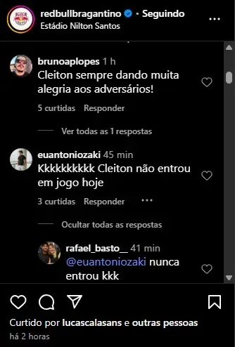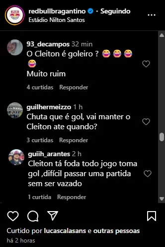 A torcida não perdoou nas redes sociais e responsabilizou diretamente o camisa 1 pela sequência de gols sofridos fora da área, situação que vem se repetindo nos últimos jogos. O cenário defensivo do Bragantino preocupa. Já são 13 partidas consecutivas sendo vazado, algo que não acontecia desde 2021.