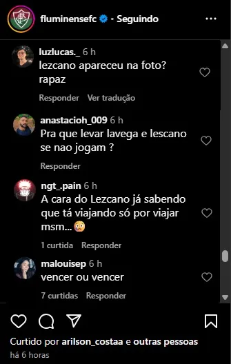 Nas redes sociais, os torcedores não economizaram críticas. Comentários como “Lezcano é modelo ou jogador? Só vejo ele em foto” e “Pra que levar Lavega e Lezcano se não jogam?” e “Porque viaja se não joga? se multiplicaram, refletindo a frustração da torcida que espera ver o atacante em ação.
