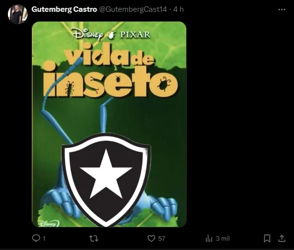O gol solitário de Juan Dinenno foi suficiente para empolgar os torcedores e dar início a uma enxurrada de memes direcionados ao rival carioca. No X (antigo Twitter), as zoeiras começaram ainda durante o segundo tempo. Frases como “Ganhar do Botafogo no modo easy” e “Faísca virou isqueiro sem chama” viralizaram rapidamente.