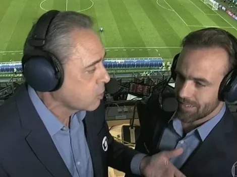 Cena inusitada arrancou risadas de Luís Roberto, Caio Ribeiro e Roger Flores na transmissão do jogo da Vila Belmiro na TV Globo