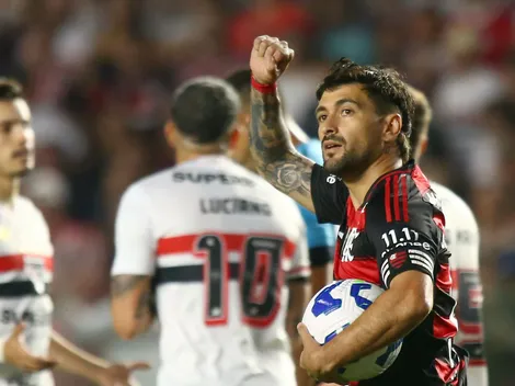 Lance de Pablo Maia em cima do uruguaio foi revisado pelo VAR por mais de quatro minutos e inflama o clássico