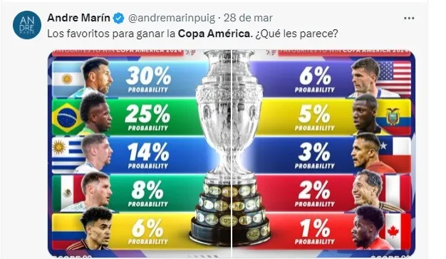 Dentro desse cenário, a Argentina desponta como grande favorita ao título, reunindo a maioria dos talentos que venceram a edição da Copa do Mundo de 2022, como: Messi, Di Maria, Mac Allister, Enzo Fernández e Dibu Martínez
