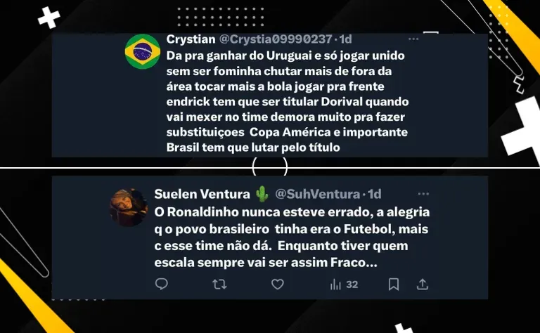 Além disso, a amarelinha pode enfrentar a Argentina na final. A seleção eliminou o Equador, com Messi perdendo pênalti e Dibu pegando dois. E, agora, eles esperam o vencedor do duelo entre Venezuela e Canadá.