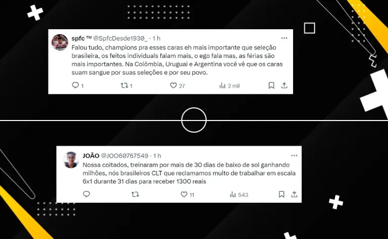 Muitos torcedores comentaram que, os jogadores do Brasil, acreditam que estão fazendo um favor para a CBF e toda população brasileira: “Essa é a pior geração de todos os tempos”, comentou outro perfil na rede social.