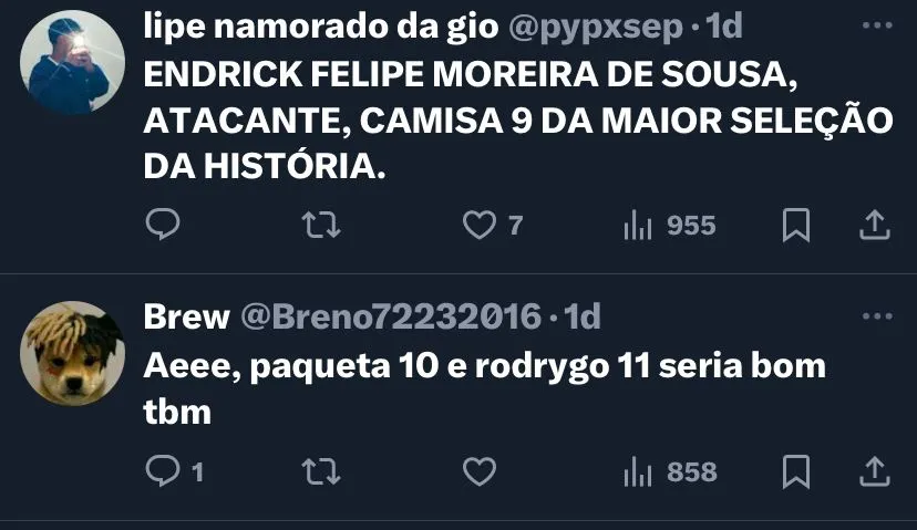 Uma das numerações mais aguardadas pelos torcedores brasileiros é a de Endrick, revelação do Palmeiras que foi vendido e se apresenta ao Real Madrid em julho. O atacante, considerado uma das grandes promessas mundiais, será o camisa 9 da Seleção Brasileira.