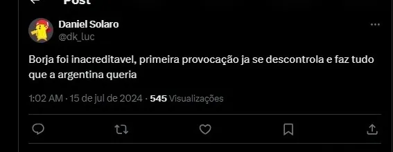 Borja foi inacreditável, primeira provocação, já se descontrola e faz tudo que a argentina queria.