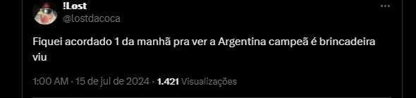 Fiquei acordado 1 da manhã para ver a Argentina campeã é brincadeira viu..