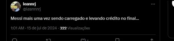 Outro reação que gerou atenção foi de um dos torcedores criticando a atuação de Messi nessa Copa América. Vale lembrar que o Argentino teve 2 participações em gols em 5 jogos disputados.