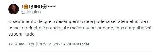 Por fim, o torcedor Toquinho lembrou de Endrick no Palmeiras e criticou Abel Ferreira:” O sentimento de que o desempenho dele poderia ser até melhor se não fosse o treineiro é grande, até maior que a saudade, mas o orgulho vai superar tudo” finalizou
