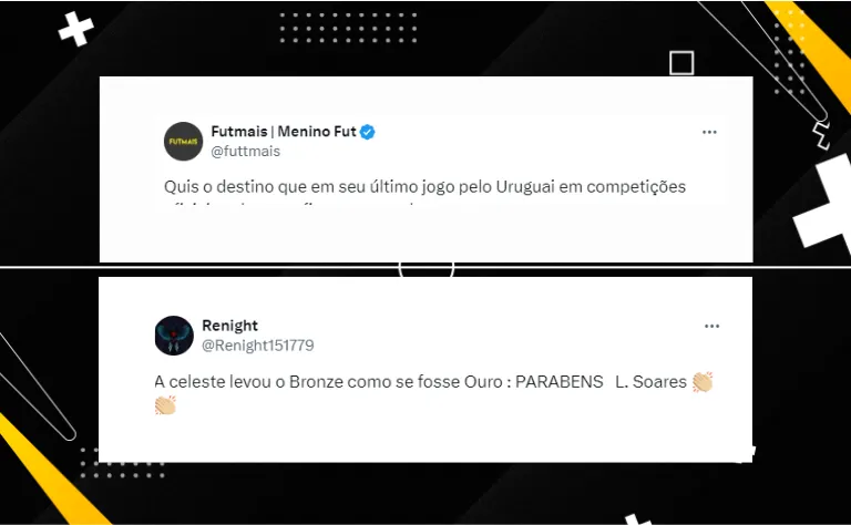 Um dos torcedores comento sobre a Seleção do Uruguai, levando o terceiro lugar da Copa América “A celeste levou o Bronze como se fosse Ouro : PARABENS L. Soares”.