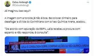 Porém, a apuração expôs que Leila não quis seguir adiante nas conversas. Aconteceu uma conversa informal e a dirigente se manifestou não querendo evoluir na conversa sobre a possibilidade de adquirir parte dos direitos da arena.