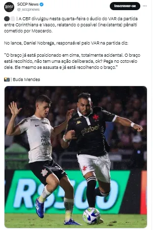 Ainda sobre o jogo entre Corinthians e Vasco um lance polêmico deu o que falar e gerou a revolta de vascaínos nas redes sociais. Os torcedores do Gigante da Colina criticaram um possível pênalti que não teria sido marcado a favor do time carioca.