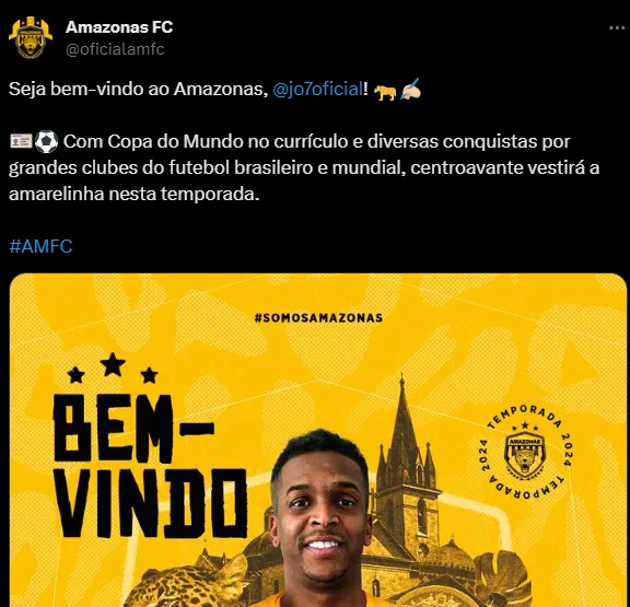 A equipe manauara anunciou a contratação do novo reforço na tarde desta sexta-feira (5). Vale destacar que a úlltima partida de no futebol profissional aconteceu ainda em 2022, quando atuava pelo Ceará.
