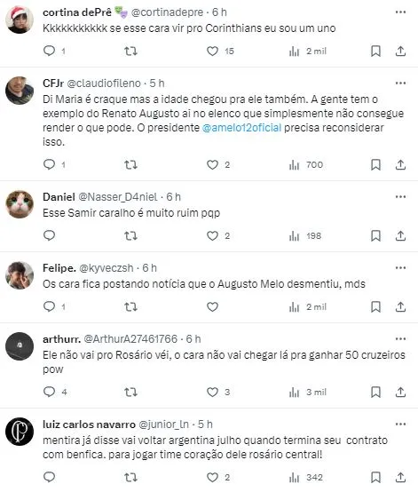 Contudo, além de resolver as situações do atual elenco, o Coringão vai em busca de reforços e, segundo Samir Carvalho, colunista do Uol Esporte, assim que definir seu diretor de futebol, o Timão vai entrar em contato com o argentino Di Maria para uma consulta sobre as possibilidades de uma negociação.
