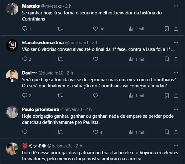 Afinal, o último comandante que conseguiu vencer seus dois primeiros compromissos foi Fábio Carille, no longínquo 2017. Na ocasião, o Corinthians derrotou São Bento e Caldense, respectivamente.