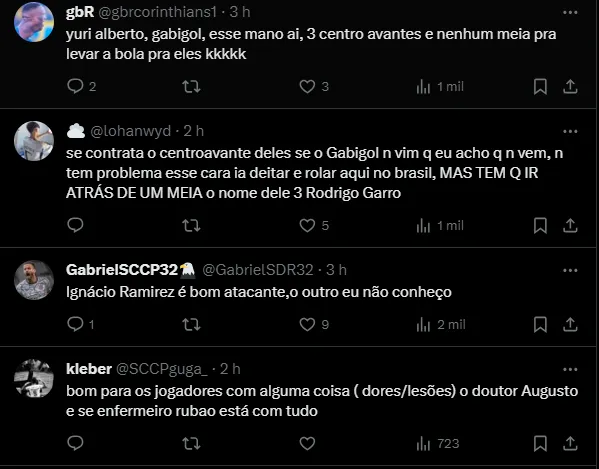 “O Corinthians nos perguntou sobre Thiago Helguera e Colo Ramírez. São jogadores que eles gostam. O encontro com o Augusto Melo foi positivo. O Corinthians tem 37 milhões de torcedores”, disse Balbi, ao jornal El País.