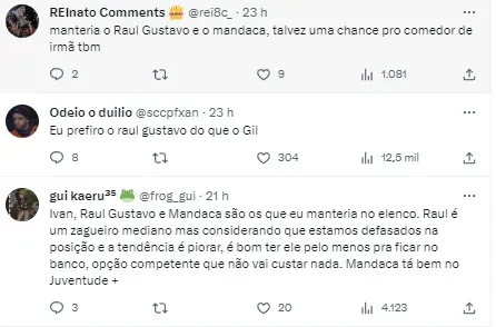 “O Corinthians tem nove jogadores emprestados e vai reavaliar a situação de cada um nas próximas semanas. Dentre os emprestados, o goleiro Ivan e o zagueiro Raul Gustavo têm mais chance de reintegração. Os demais devem seguir em outros clubes”, informou o jornalista Samir Carvalho sobre as possíveis voltas ao Parque São Jorge.