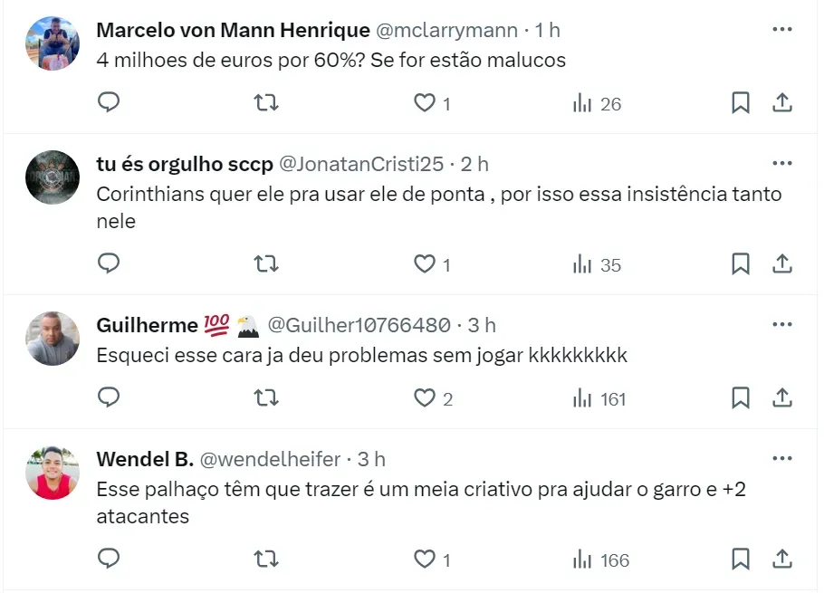 O próprio goleiro Cássio, ídolo da Fiel Torcida, falou em entrevista após a derrota para o Ituano da necessidade de chegar reforços e cobrou a diretoria. Em 2024, o Timão trouxe seis reforços, sendo que o zagueiro Gustavo Henrique e o meia Rodrigo Garro ainda não estrearam.