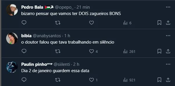 Logo quando foi eleito, um dos primeiros nomes mencionados pelo futuro presidente foi o de Gabigol, causando impacto e divisão de opiniões na torcida alvinegra. Até aqui, entretanto, apenas Hugo (Goiás) e Raniele (Cuiabá) entraram em acordo com o Time do Povo.