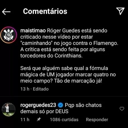 Em uma publicação feita, justamente incluindo o vídeo do lance em específico, o jogador fez um comentário, rebatendo as críticas recebidas: “Pqp são chatos demais só por Deus”, escreveu. No mesmo post, inúmeras mensagens positivas ao atacante foram vistas, especialmente dizendo para que não ligue e siga focado no que vem sendo feito dentro de campo.