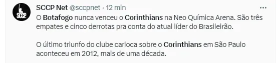 Após empatar em 4 a 4 com o Grêmio, em um dos melhores jogos do Campeonato Brasileiro até aqui, o Corinthians volta a campo na próxima sexta-feira (22) em um confronto logo contra o líder da competição nacional: o Botafogo. Em caso de vitória, dependendo da combinação de resultados, o Timão pode chegar até ao 10° lugar, caso Internacional e Cuiabá percam seus jogos para Athletico-PR e Atlético-MG, respectivamente.