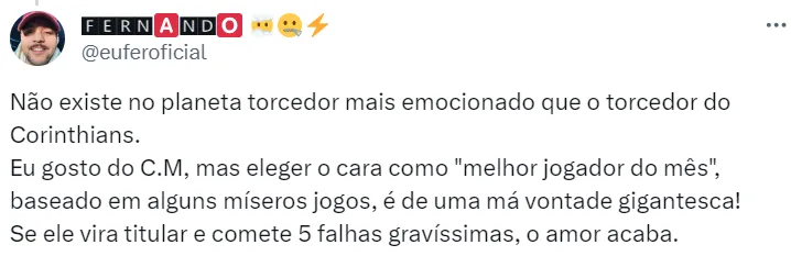 Os jogadores já vinham sofrendo críticas. Fausto Vera não correspondeu às expectativas do Corinthians, e não conseguiu entregar em 2023 o mesmo nível que foi visto em 2022.