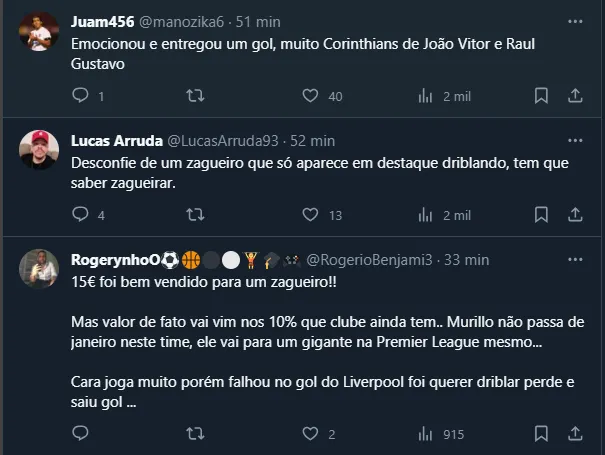 Entre elas, uma das principais críticas ao presidente Duílio Monteiro Alves aconteceu há cerca de dois meses. Na ocasião, ele optou por vender Róger Guedes e Murillo no meio das semifinais da Copa do Brasil.