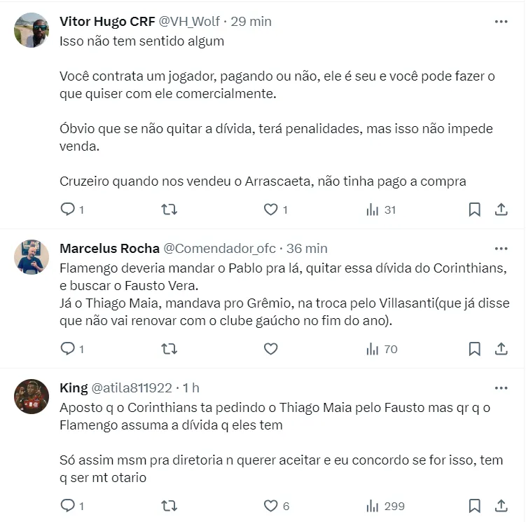 Entretanto, a equipe carioca demonstrou interesse na contratação de Fausto Vera e estaria disposto a envolver um atleta na negociação. Trata-se de Thiago Maia, que está em baixa no Rubro-Negro.