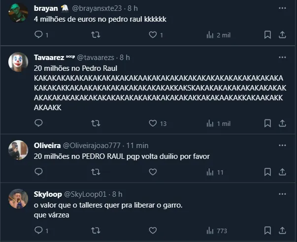 Assim, quando os valores do possível negócio por Pedro Raul acabaram vazando, o torcedor do Timão resolveu ligar o alerta e criticar Augusto Melo pelo alto valor envolvido na negociação.