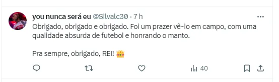 “Obrigado a todas as comissões que trabalhei nos últimos anos, rouparia, seguranças, staff que nos dão todo o suporte para que tudo aconteça. Sobre a torcida, meu eterno MUITO OBRIGADO, vocês fizeram essa jornada ser ainda mais especial! Sem palavras para todo o carinho que vocês sempre tiveram comigo”, finalizou Renato Augusto.
