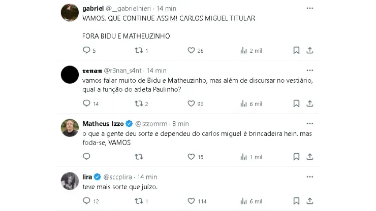"O Corinthians é um jogo diferente, independentemente da fase que eles estão vivendo. Temos que respeitar ao máximo. É um jogo de detalhes. As principais chances foram nossas, criamos mais, mas time grande precisa de apenas uma chance para fazer o gol."