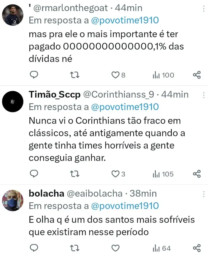 Além dos resultados desfavoráveis, o Corinthians sofreu eliminações para o Palmeiras nas semifinais do Paulistão de 2021, e para o São Paulo, tanto nas semifinais do Paulistão de 2022 quanto na Copa do Brasil de 2023.