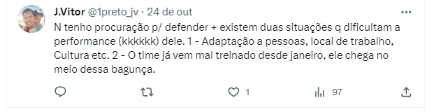 Enquanto é visto outros jogadores se doando mais (alguns, não todos), Rojas lembra até outro gringo: Fausto Vera. Parece que tudo está bem e que está sendo disputada uma pelada e não um jogo oficial. É bem visto que o paraguaio tem talento, mas enquanto não colocar na cabeça que o Corinthians precisa de jogadores com raça, além de técnica, ele não irá render. O paraguaio precisa mostrar mais disposição para assim conseguir ajudar o Timão. Caso mostre isso, ele pode conseguir se destacar pela equipe. Habilidade para isso ele tem.